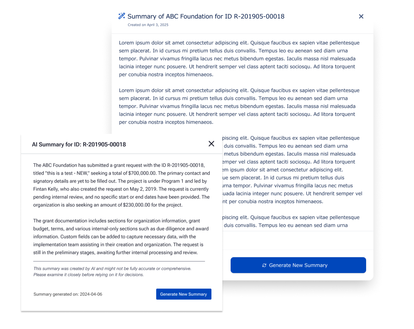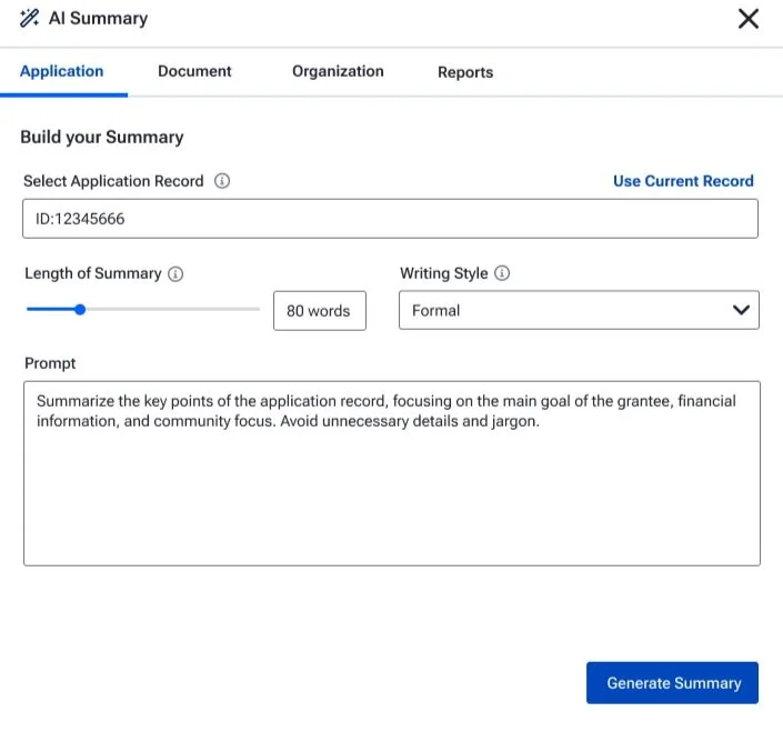 Provided quick, AI-generated summaries to help users assess application alignment with fiscal goals