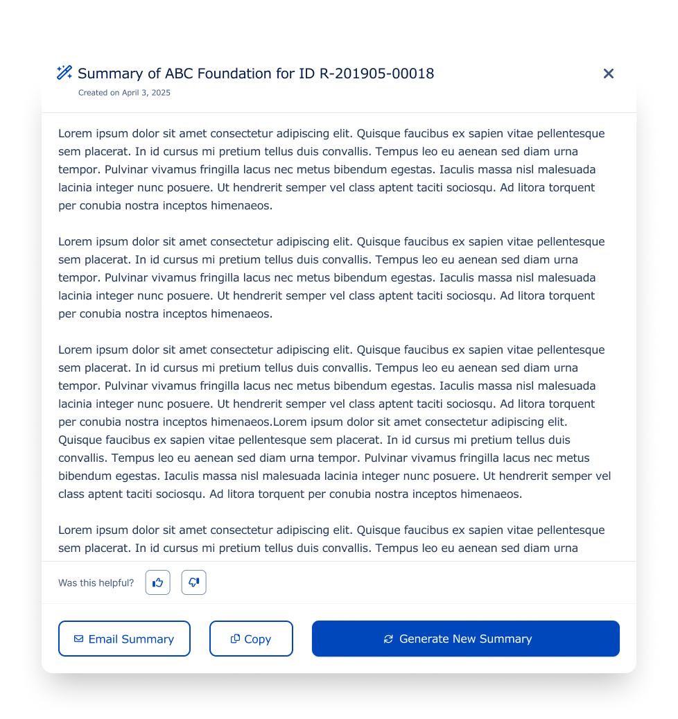 Fluxx users were required to manually review large volumes of grant records and lengthy documents, creating a slow, cognitively heavy workflow that hindered productivity and delayed decision-making.