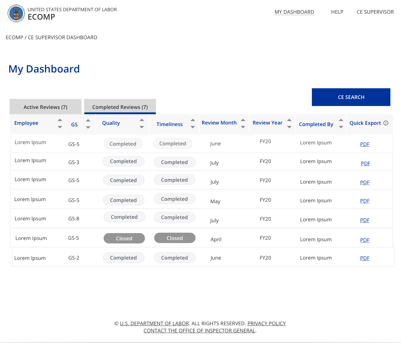 Redesigned the Department of Labor’s Office of Workers Compensation Program (OWCP) evaluation workflow with a responsive Dashboard and detailed staff profiles, streamlining case tracking and enabling Supervisors to efficiently manage their caseloads, supporting millions of federal employees in receiving workers’ compensation benefits.