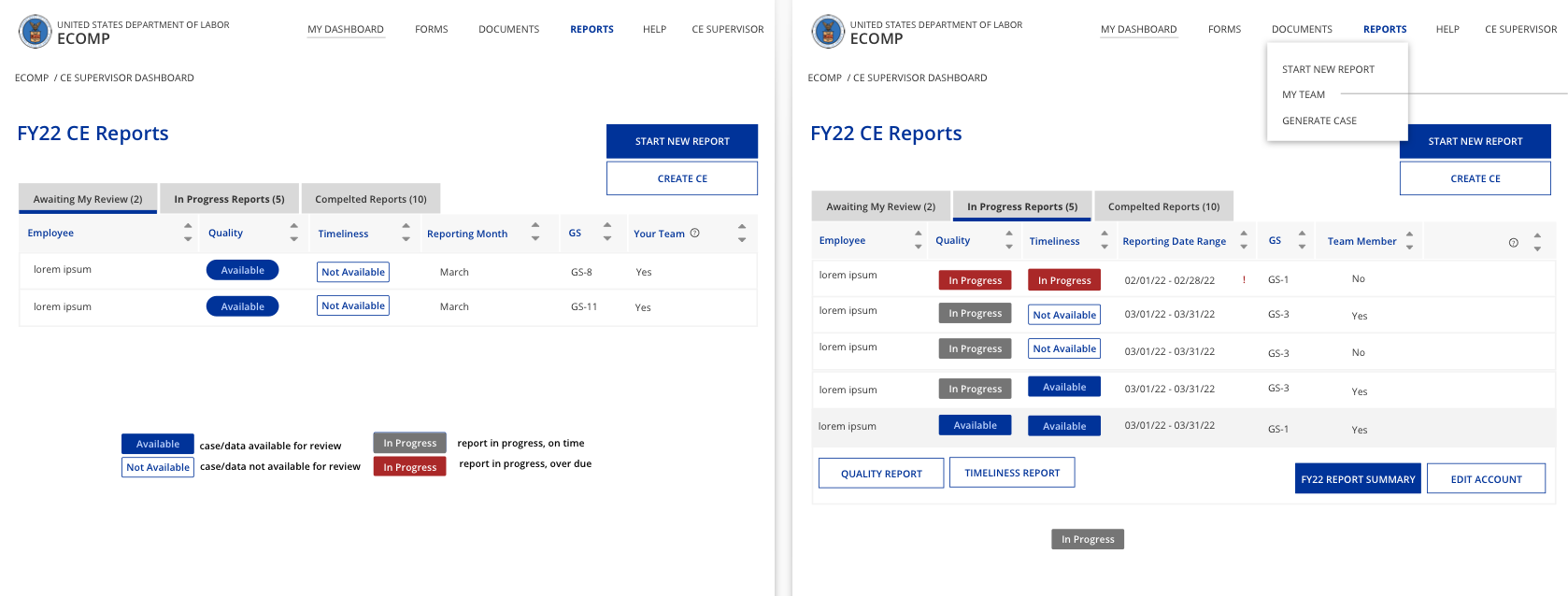 Through three rounds of intensive user interviews, I mapped the current evaluation process, uncovering pain points and identifying the key goals of Case Examiner (CE) Supervisors in managing and assessing their teams.