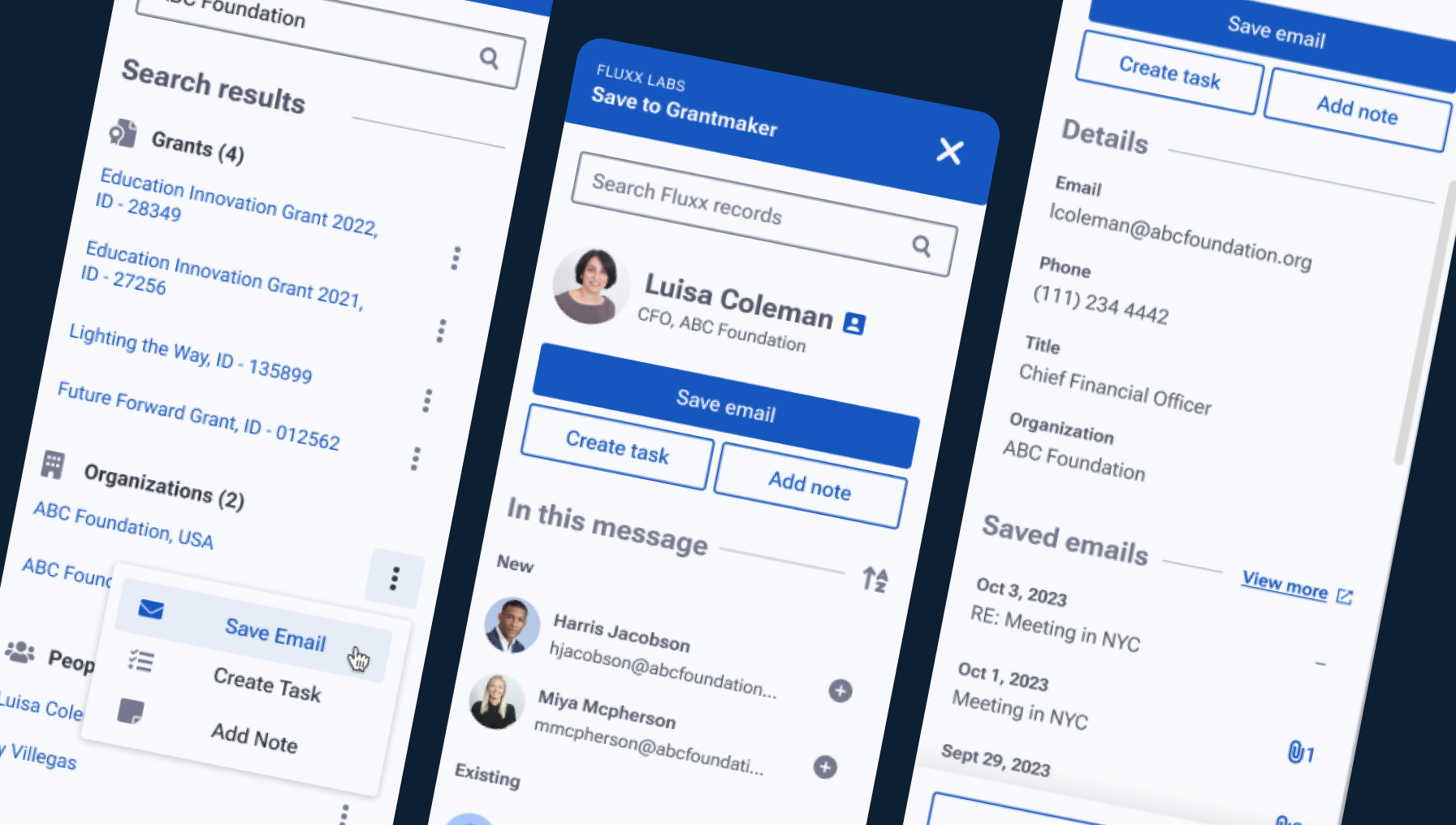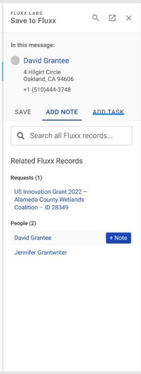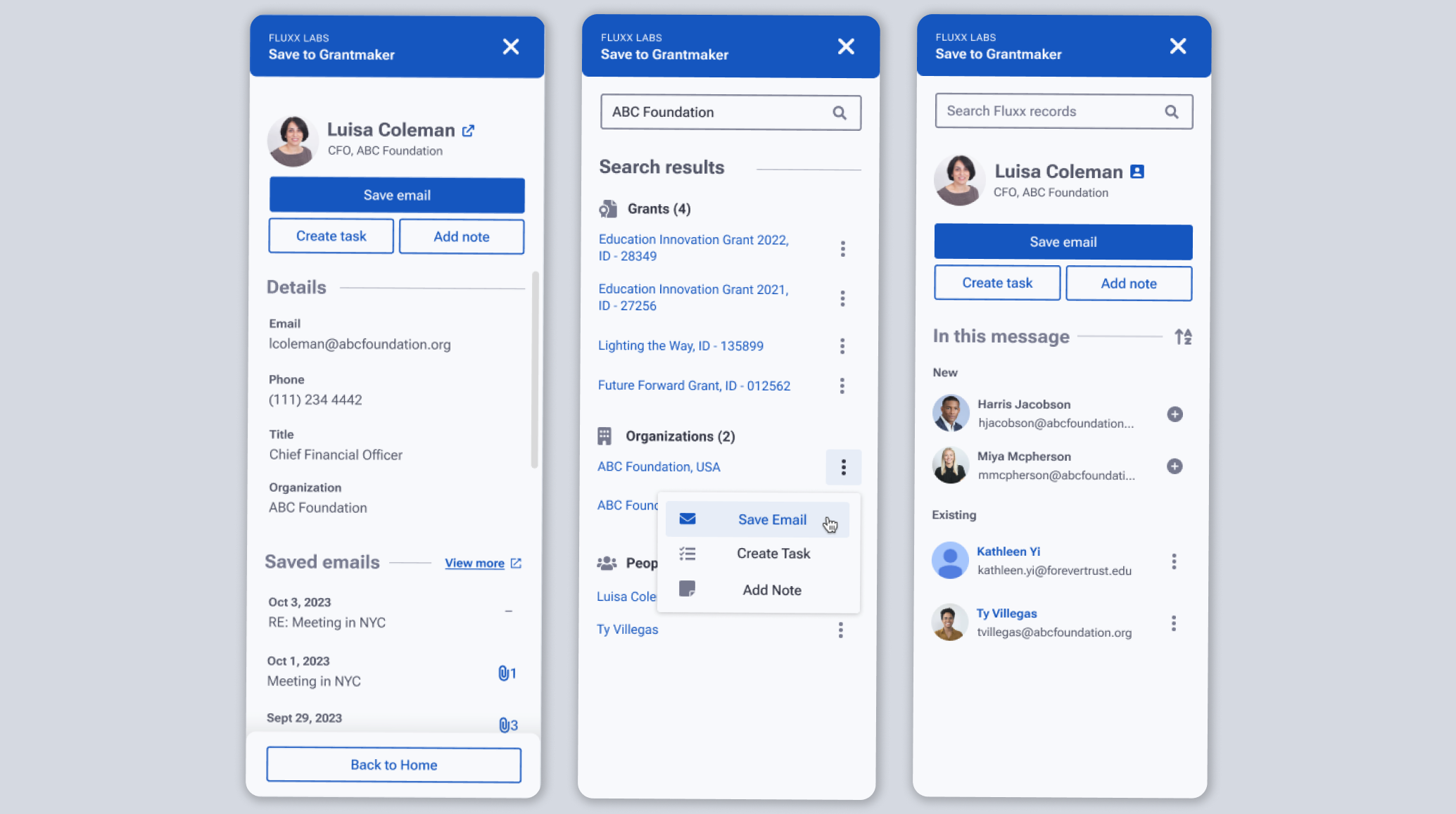 Granting organizations needed a way to seamlessly store information from Gmail directly to their Fluxx site.