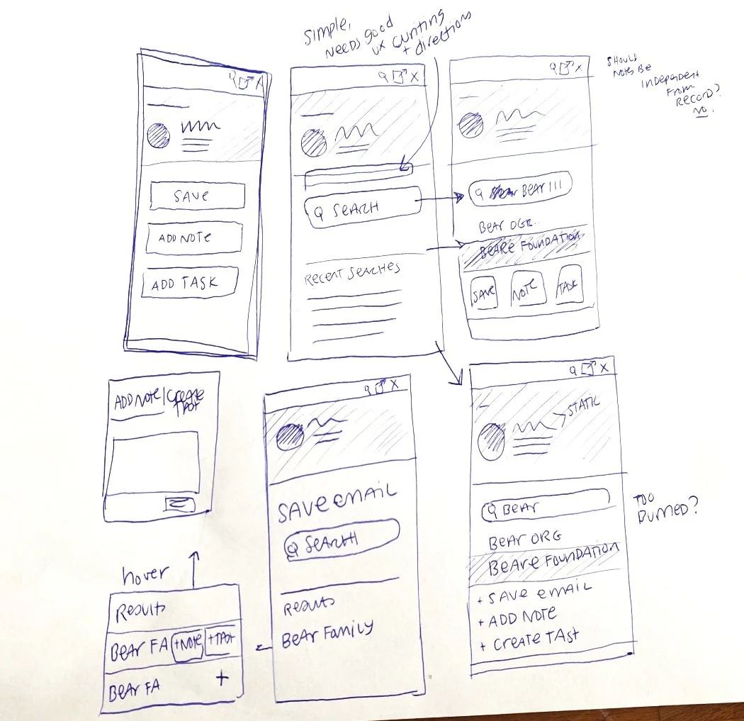 Key context, like the recipient’s name and organization, was placed prominently at the top, while the core action. Saving the email was made visually distinct and easy to access.